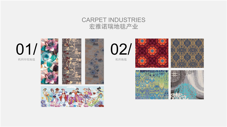 深圳宏雅諾瑞地毯有限公司自2008年創立以來,一直致力于星級酒店、辦公大廈及高端別墅會所提供高品質的產品與優質服務及領先國際水平的售后干洗技術培訓計劃,多年來不斷創新、優化產品結構,一直引領行業發展趨向,宏雅諾瑞地毯產業以綜合性加工生產中高檔機織及手工槍刺地毯為主,集產品研發、設計生產、銷售、鋪裝售后一體化的產業鏈生產企業,企業于2005年在廣州市花都區設立工廠至今,項目輻射全國各地城市地區。